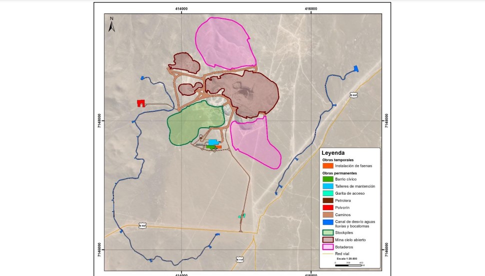 Es así como el proyecto, que se emplaza en la comuna de Taltal, considera la extracción de minerales oxidados y sulfurados de cobre a través del método de explotación a cielo abierto de tres rajos, denominados Principal, Satélite 1 y Satélite 2, los que en conjunto alcanzan 99,2 Mt de roca total.