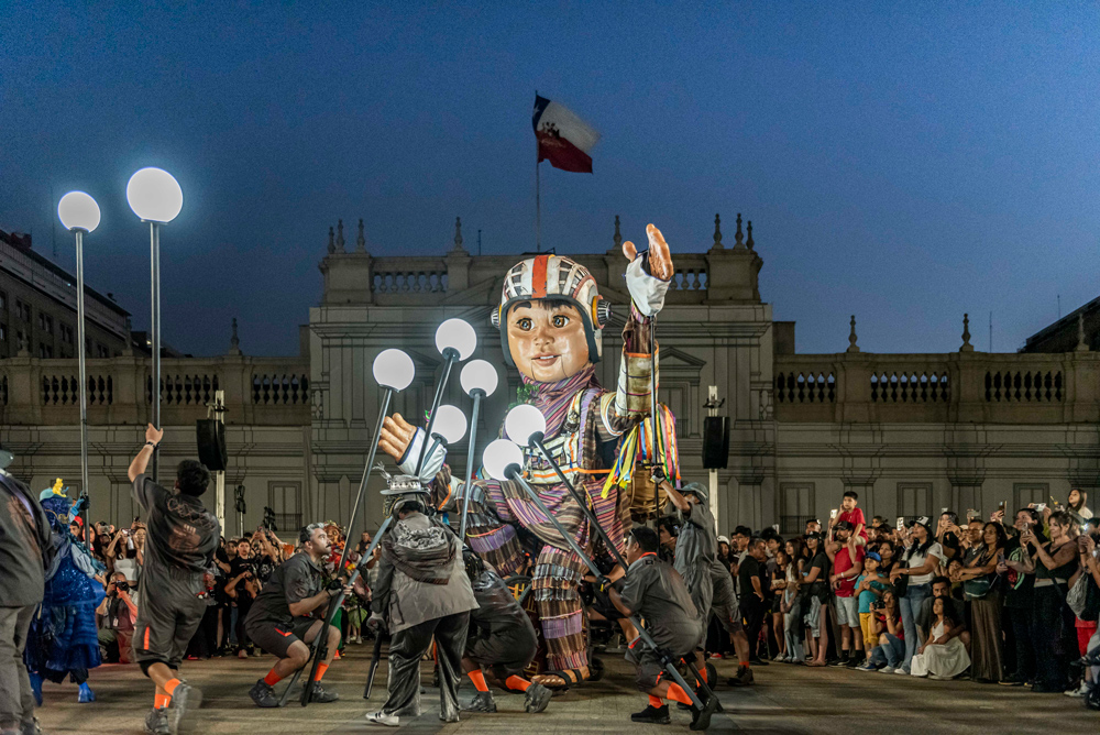 El cierre tuvo como escenario el Parque Brasil, donde el pasacalle “El gigante y los niños Wara Wara” transformó la Avenida Brasil en un gran teatro al aire libre. Inspirado en el Gigante de Tarapacá y la cosmovisión andina, el montaje combinó marionetas de gran formato, música en vivo y acción coral, reuniendo a familias y público de todas las edades en una experiencia que puso en valor la memoria, el patrimonio y la identidad cultural del norte. La propuesta también recorrió Peine, reforzando el carácter comunitario y territorial del festival.