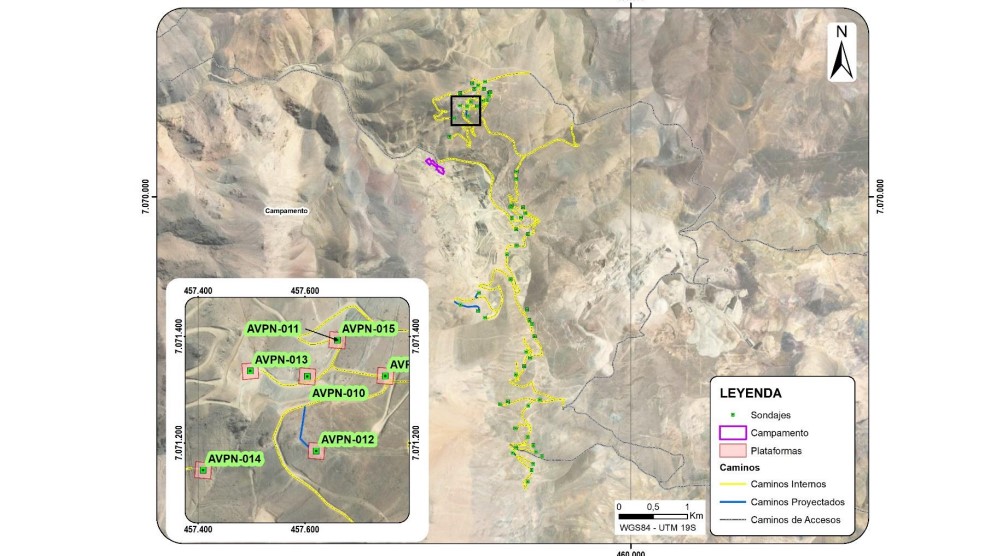 El período de ejecución de la campaña de sondajes se estima en 10 meses utilizando tres equipos de perforación, incluidos la movilización y desmovilización de las plataformas de sondaje.
